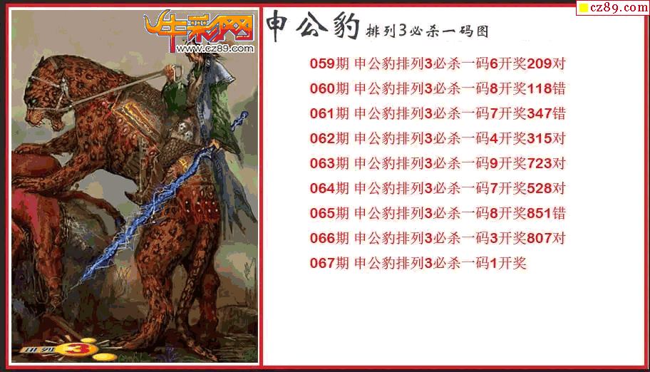 > 2026067期P3申公豹必杀一码图