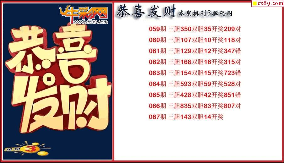 > 2026067期P3恭喜发财胆码图